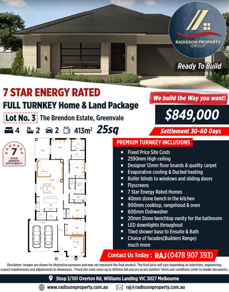 Disclaimer: Images are shown for illustrative purposes and may not represent the final product. The final price will vary depending on selections, engineering, council requirements, and allowance adjustments. *Fixed site costs cover up to 500mm fall and are as per builders’ terms and conditions (refer to tender document).